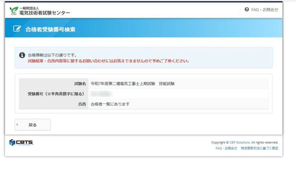 試験日から約一か月後、試験センターのサイトで合格者の番号が検索できるようになります。自分の番号を検索すると…ありました!良かった。実技試験対策で結構苦労したので、無事合格できて本当に嬉しかったですね。