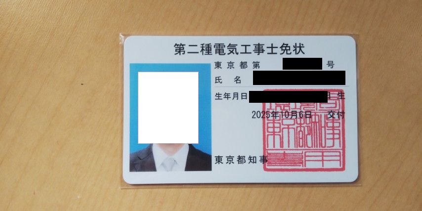 この度、2025年上期の第二種電気工事士試験に独学で一発合格しました。
